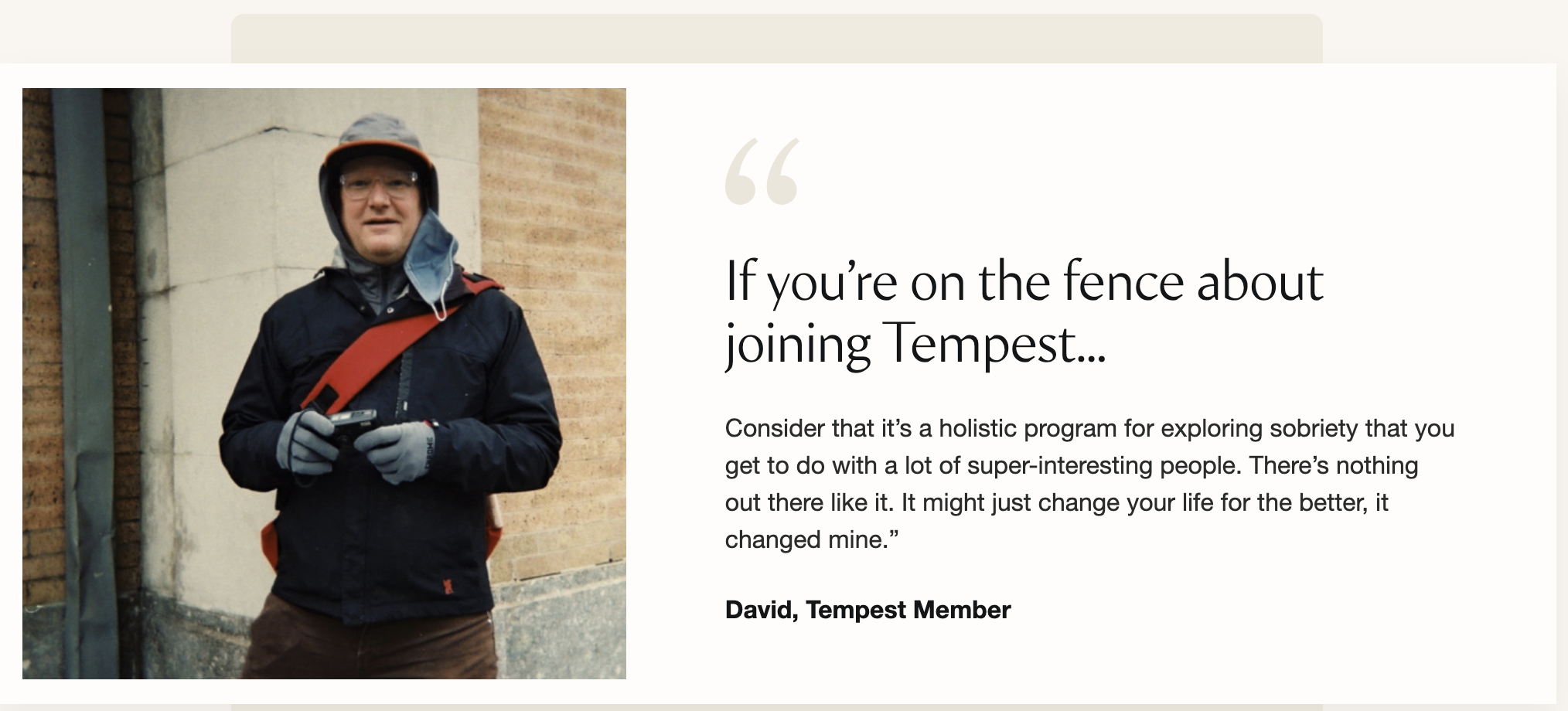 Through images Tempest wanted to share the story of recovery from their community that consists of counselors and members that are spread throughout the world. The creative called for images that profiled them in an authentic, honest, stripped down way that was shot safely in their environment while in quarantine during the peak of covid. I was brought in to oversee the 15 talent and produced from conception to final content of a library of images. I sourced and shipped out disposable cameras throughout the US and generated an overall shoot budget for two rounds of shooting. With the guidance of our art director I worked to keep them all on our production schedule. I worked with them directly to stay inspired to build their personal content. Over a year we worked with selected Tempest community to shoot themselves in their homes and towns to create the campaign content. Working all in analog with Photo Labs NYC we were able to take the challenge of shooting during covid and use it to help us better showcase their truth of being and staying sober. Light leaks, water spills, fingers in the lens, not perfect cropping, tons of chickens and cats all became photography magic as it only helped to deepen the honest narrative of what living sober is.